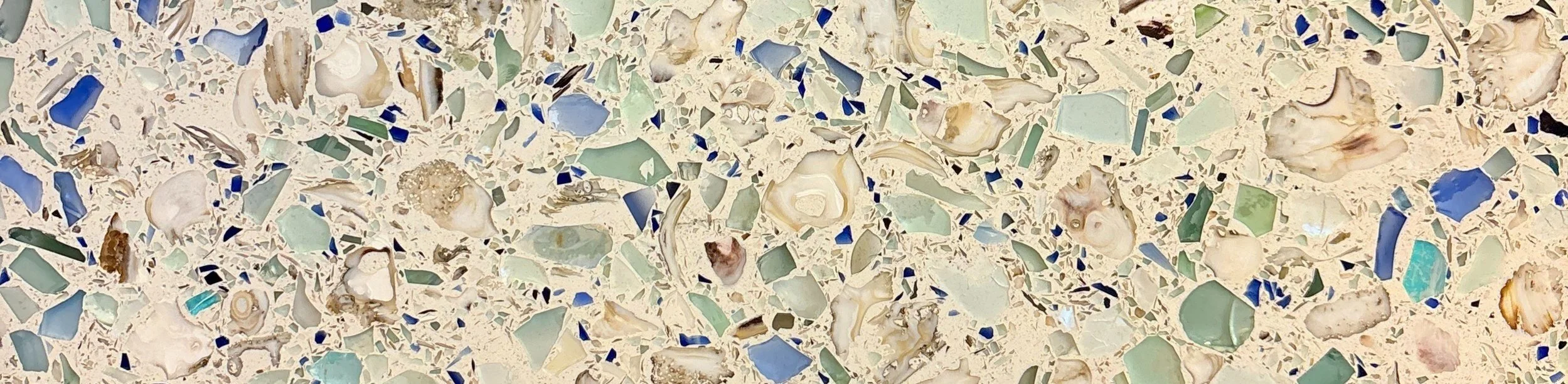 Jennifer met Elizabeth Fisher of GlassEco Surfaces in 2017 at a local business networking event in Charleston, SC, and she’s proud to call her a close friend and business colleague after all these years. The GlassEco product line was founded in 2005, and it completes the local recycling loop by processing some of the glass collected by Fisher Recycling and reusing it in stylish custom countertops and other hard surfaces. Adding oyster shells to the mix is a popular way to create a distinctive coastal look!